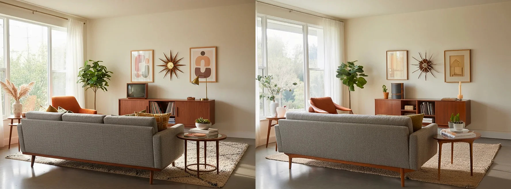 | 1. Interior Design Visualization | Text to Image | Assess composition, spatial logic, and realism. | “A cozy mid-century modern living room with walnut furniture, soft lighting, and a grey fabric sofa. Add subtle decor details and natural window light.” |