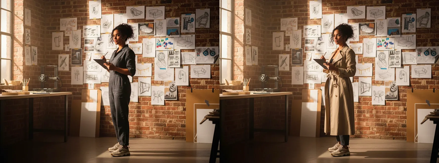 | 3. Character / Portrait Creative Editing | Text to Image | Test human composition accuracy and aesthetics. | “Portrait of a female designer in a studio with creative sketches on the wall, cinematic lighting, shallow depth of field.” |